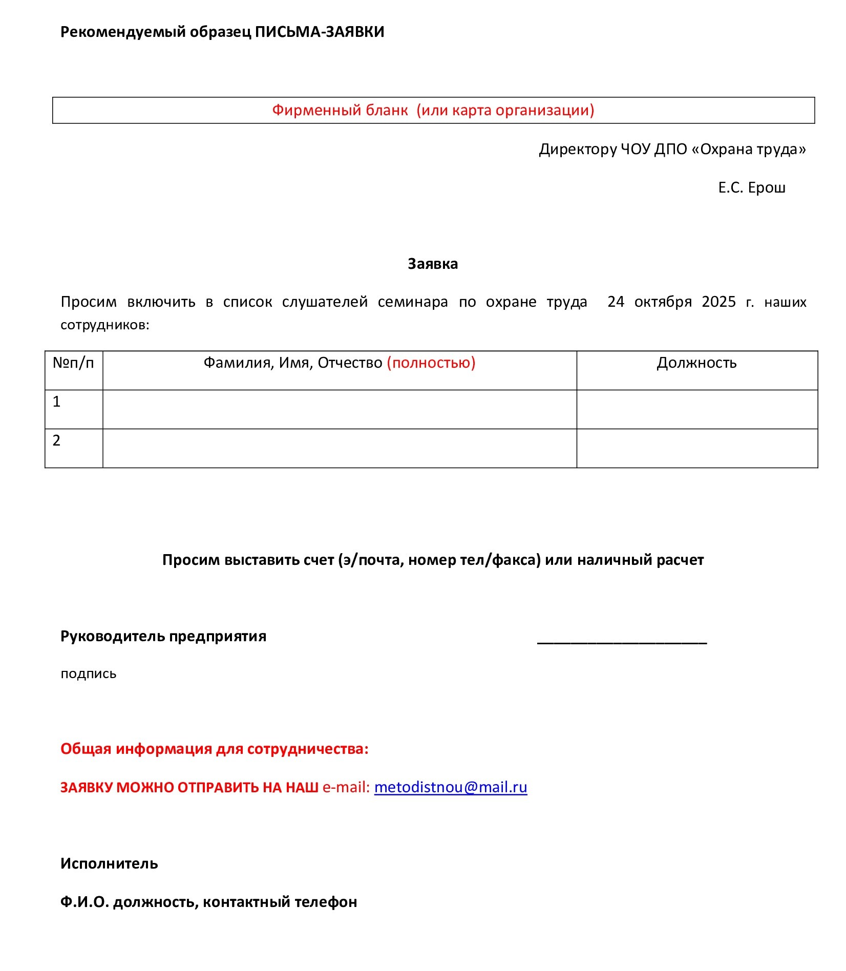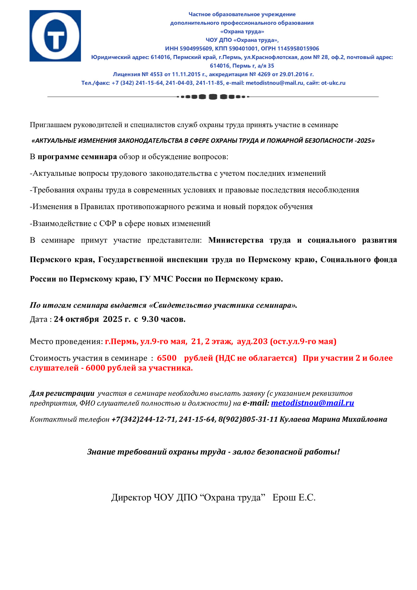 Директор ЧОУ ДПО «Охрана труда»